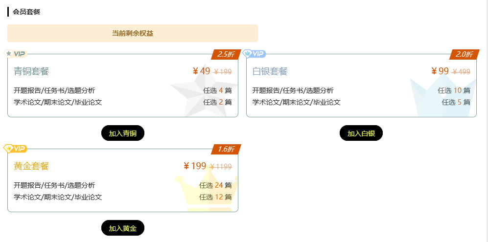 范文喵提供按篇数付费购买或会员套餐订阅的模式,具体价格如下:
